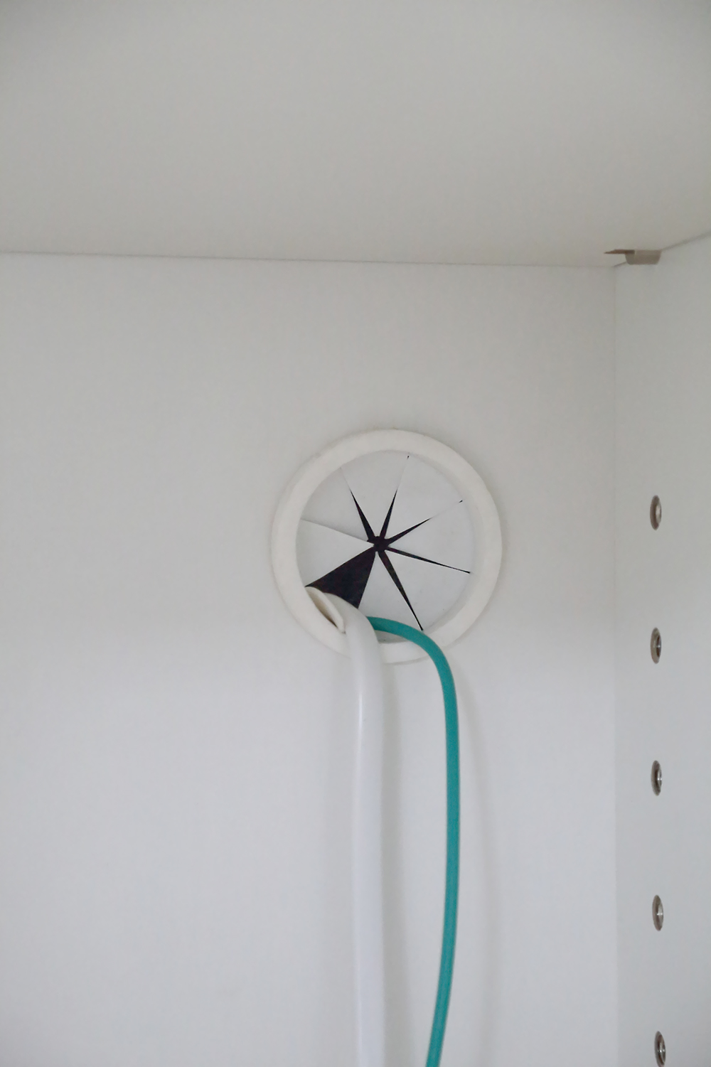 綾野製作所さんにお願いして電気コードとアース線を引くための穴を開けていただきました。別料金だったのですが、開けてよかったです★