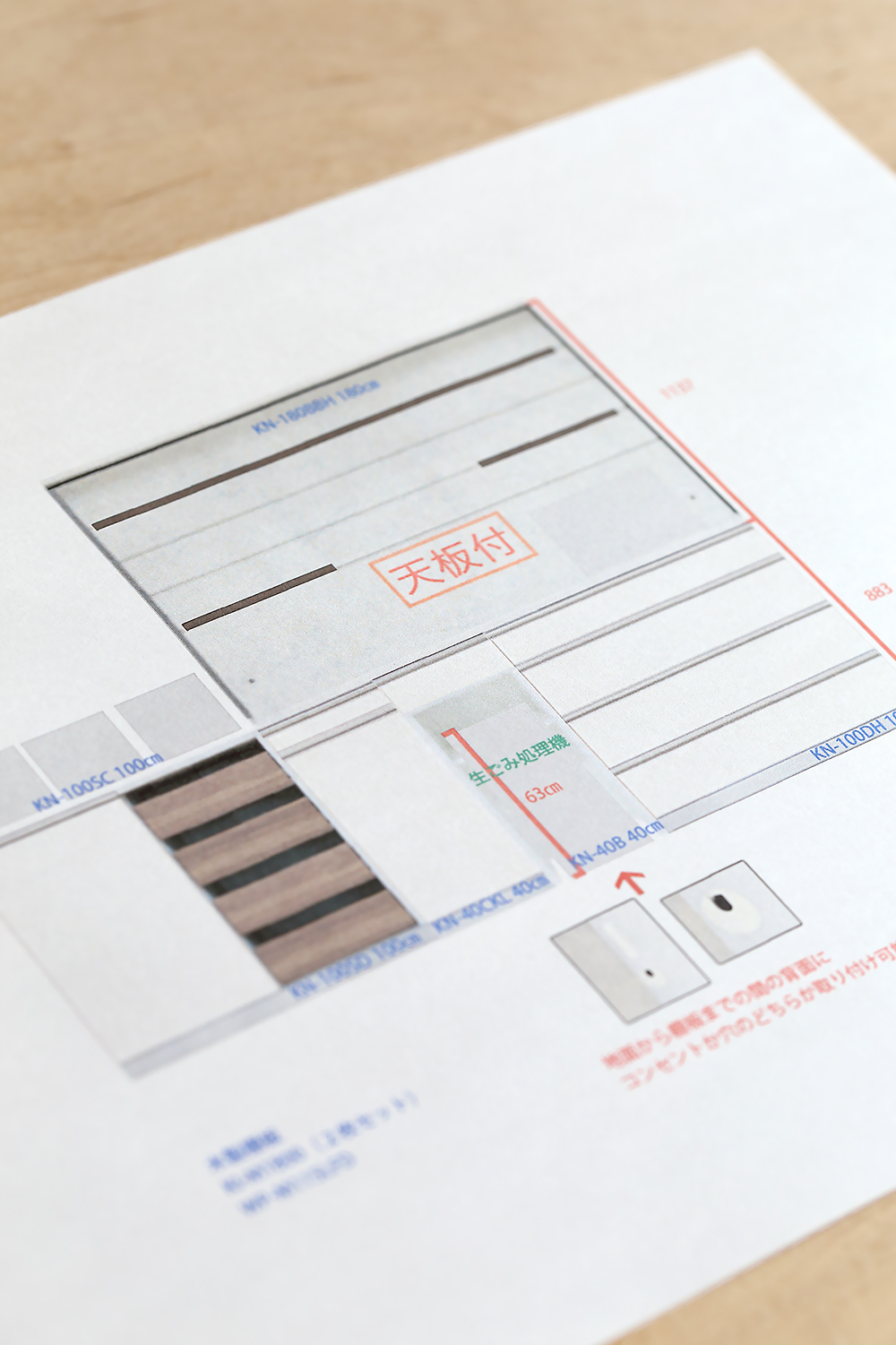 これがあったお陰でお店の担当者さんと細かい内容を相談できたり間違いなく注文ができ、また設置してくださった業者さんにも設置順をお伝えするのがとても楽でした。