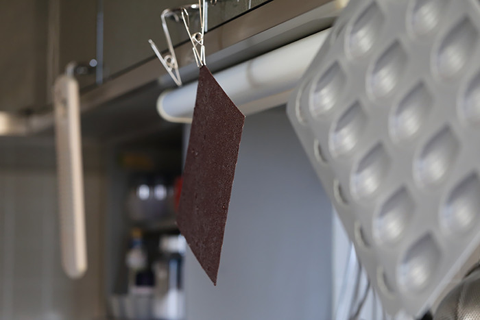 「板の上に大ひらを置いて」と説明書きに書いてありましたが、適当な板が見当たらなかったので無印良品の落ちワタ混ふきんの上に乗せて作業しました。